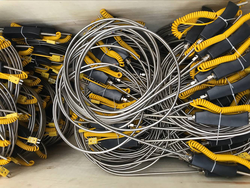 手柄式铠装热电偶电极由两根不同导体材质组成。当测量端与参比端存在温差时,就会产生热电势,工作仪表便显示出